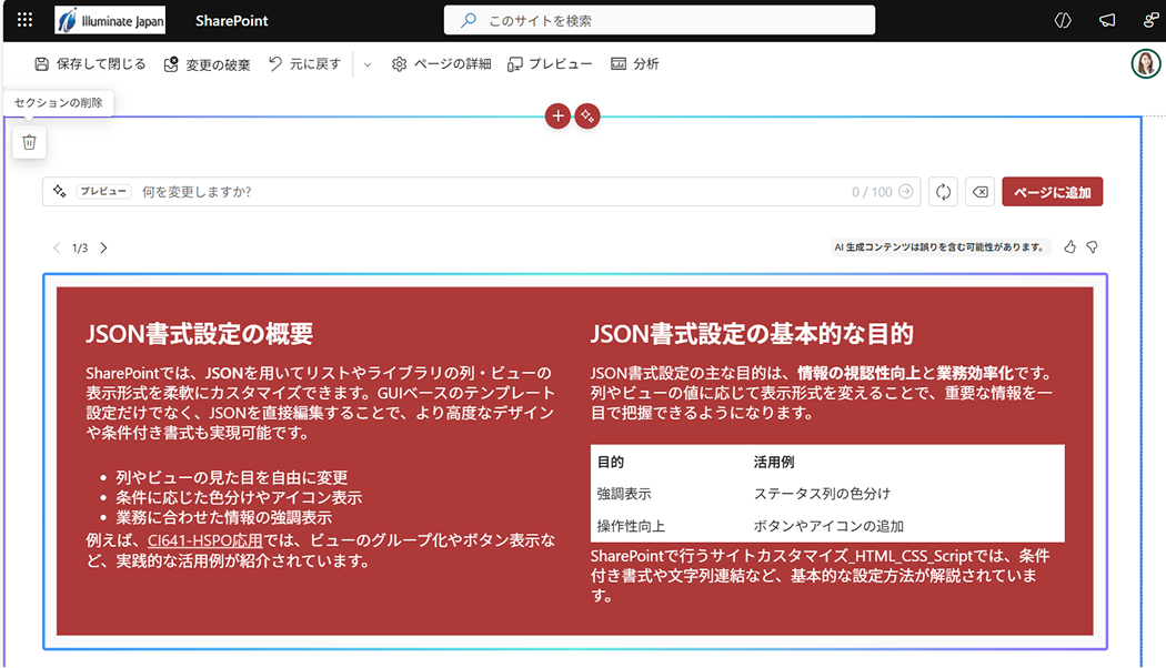 M365 Copilot × SharePoint:AI セクションで変わるコンテンツ編集