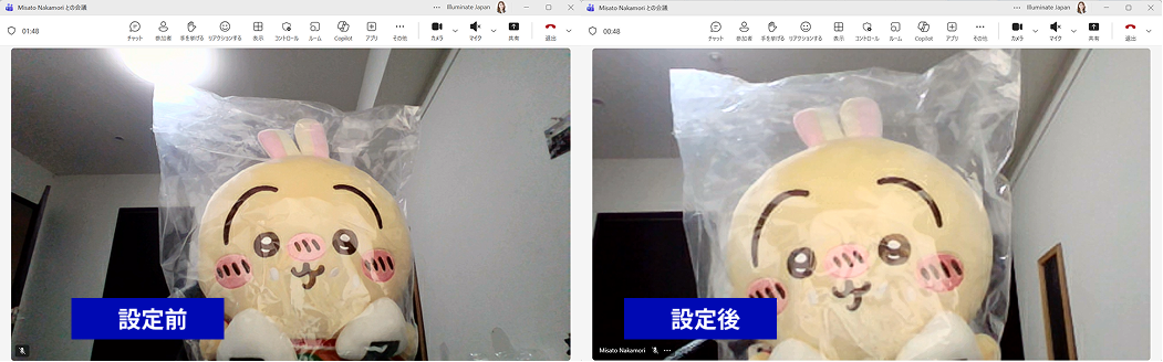 💡 メモ: 左:ズーム設定前(まぶしい)、右:ズーム設定後(ちょうどいい距離感)。